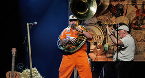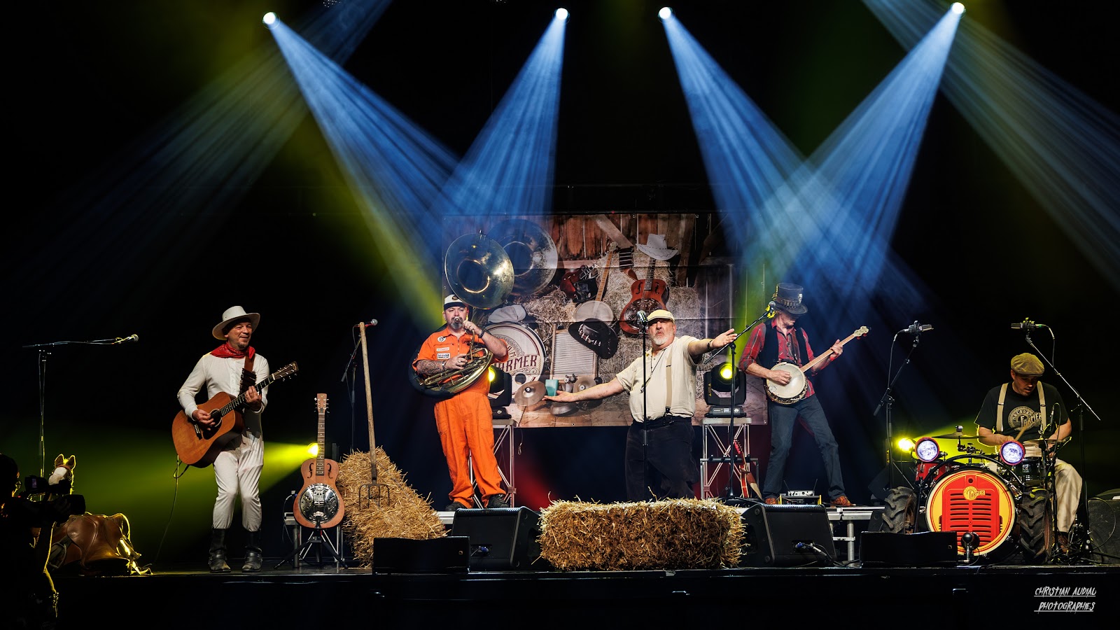 Avec un line-up original - Chant, guitare/harmonica, banjo/mandoline, soubassophone, batterie - Macadam Farmer invite tout le monde à un pur moment de convivialité : Sourire au coin des lèvres, le public va de surprise en surprise !